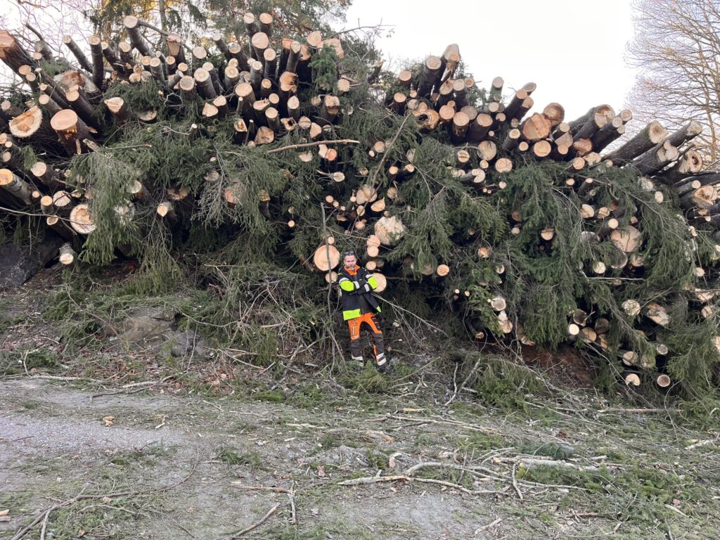 För ett kostnadseffektivt upplägg har vi samarbeten med lokala åkerier och forslar bort resterna som uppstått under sektionsfällningen med container och kranbil. Detta omfattar grenar och ris som sedan lämnas på närmaste återvinningsstation. Inom ca fem dagar efter det att fällningen genomförts är alla rester borta. Observera dock att städning av stubbflis och sågspån inte ingår i åtagandet. För vedeldande kunder kan vi se till att materialet kommer till användning och erbjuder därmed också kubbning vid önskemål.